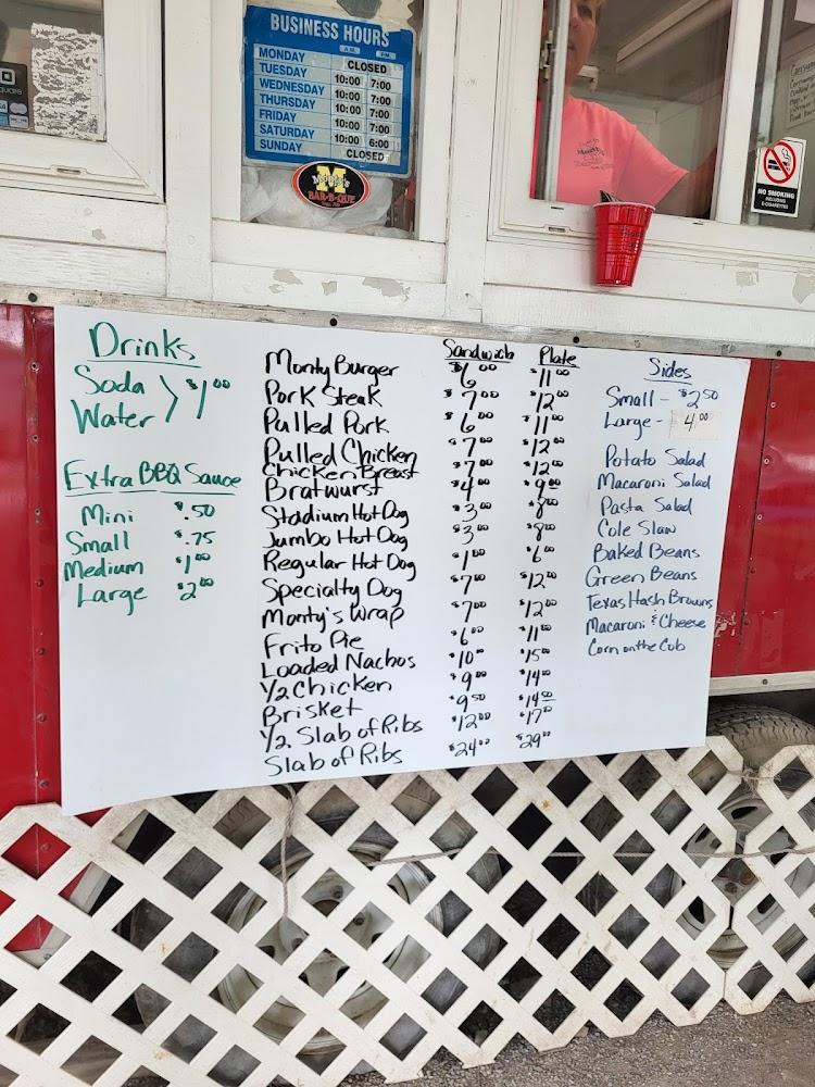 Monty's Catering offers a menu filled with satisfying barbecue dishes, designed to please a variety of palates. Main offerings feature smoked meats like burgers, pork steaks, pulled pork, brisket, and ribs. Each plate comes generously served, often inviting sharable experiences at the table.
